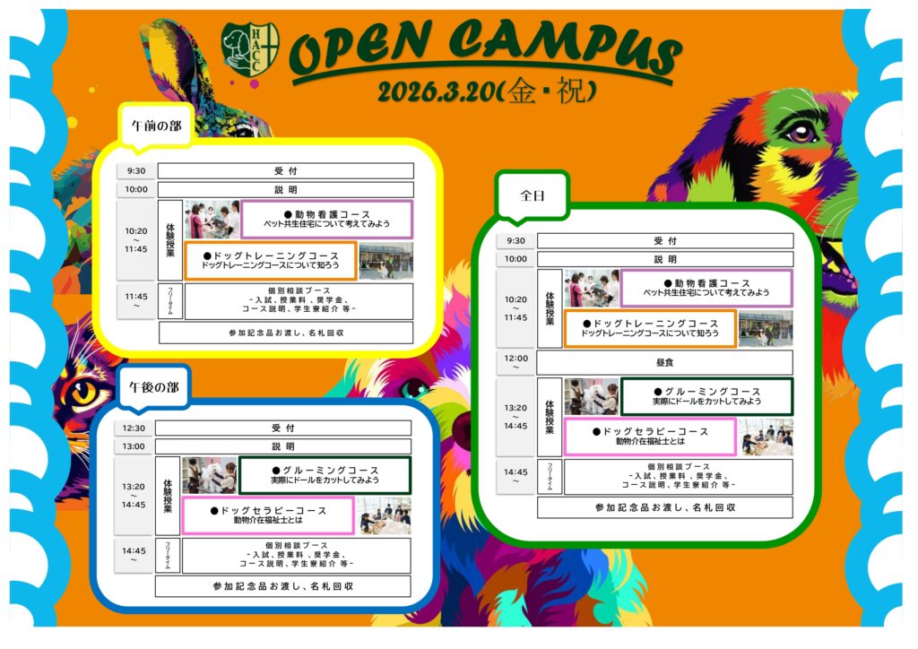 広島アニマルケア専門学校では、3月20日(金)のオープンキャンパスで